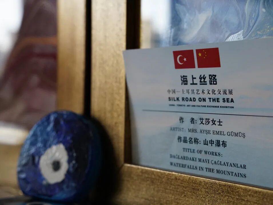 艺术家艾莎老师带同学们参观了自己的美术工作室,其中陈列了许多融合了中土两国元素的工艺品。艾莎老师还现场演示制作了“红木蓝眼睛”的工艺品——“蓝眼睛”也叫“辟邪之眼”,是土耳其重要的文化元素,在土耳其各种场景和各类艺术品中都能见到;红木在中国则蕴含着丰富的文化内涵和深厚的历史传承。“我的很多创作灵感都来自于土耳其和中国文化艺术的传统元素,我很喜欢把它们结合在一起,这也是我对中土友谊长存的美好期望。”艾莎老师说道。