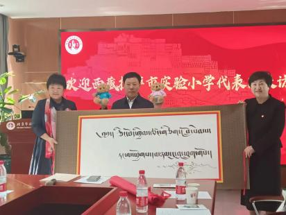 随后,访问团向万泉小学赠送了“京藏一家亲,同心共筑教育梦”的藏文书法作品,万泉小学同时回赠了学校校服熊和由学生设计的数学节纪念玩偶“问号兔”。最后,刘全华校长表示,拉萨实验小学尽管受地域条件的限制,教学条件有限,但是万泉小学以生为本的教育理念值得我们所有人学习。