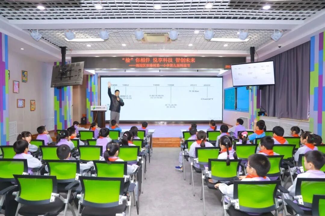 2023年10月27日,学校举办“榆”你相伴 悦享科技 智创未来——双榆树第一小学第九届科技节,本次科技节除全校1700名师生参与外,还邀请了社区居民、幼儿园小朋友及家长一同加入到活动的参观体验中来。此次科技节共分为科普讲座、互动体验、合作共赢、科技制作四个板块。