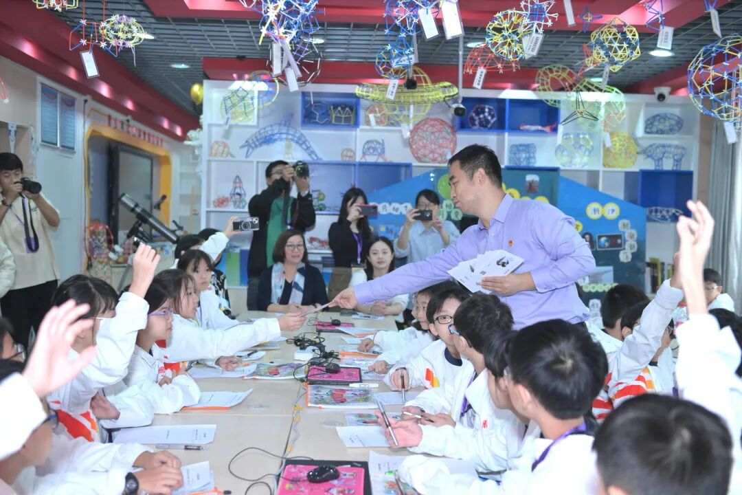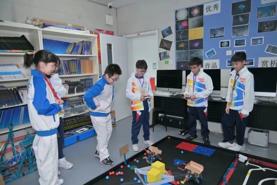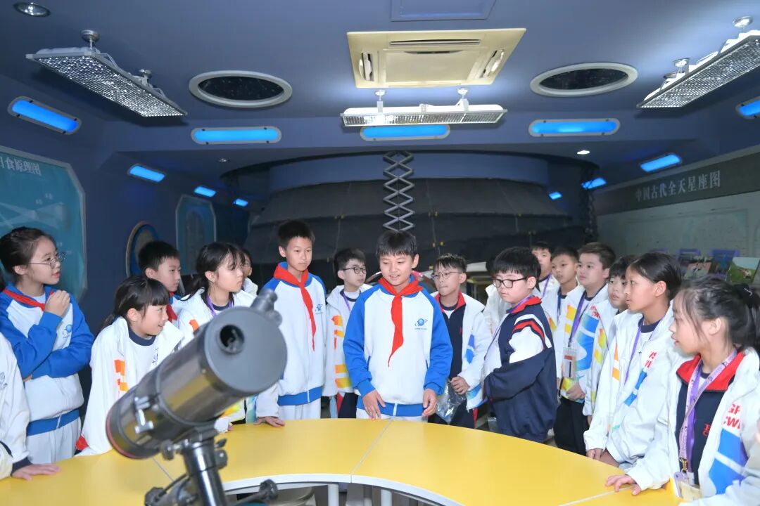 活动三,航天图强小学的学生代表和香港轩尼诗道官立小学的同学们,组建小组开展生生互动体验。在航天图强小学同学们的引领下,一起体验天文望远镜及机器人的操作,感受数学的乐趣,还一起走进学校天文馆,感悟球幕星空的魅力。