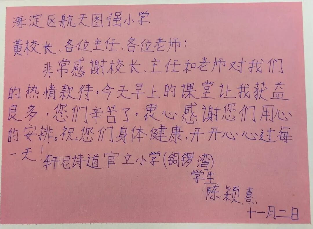 2023年11月2日,北京市海淀区航天图强小学迎来香港轩尼诗道官立小学(铜锣湾)的师生到访,开展学习交流活动。