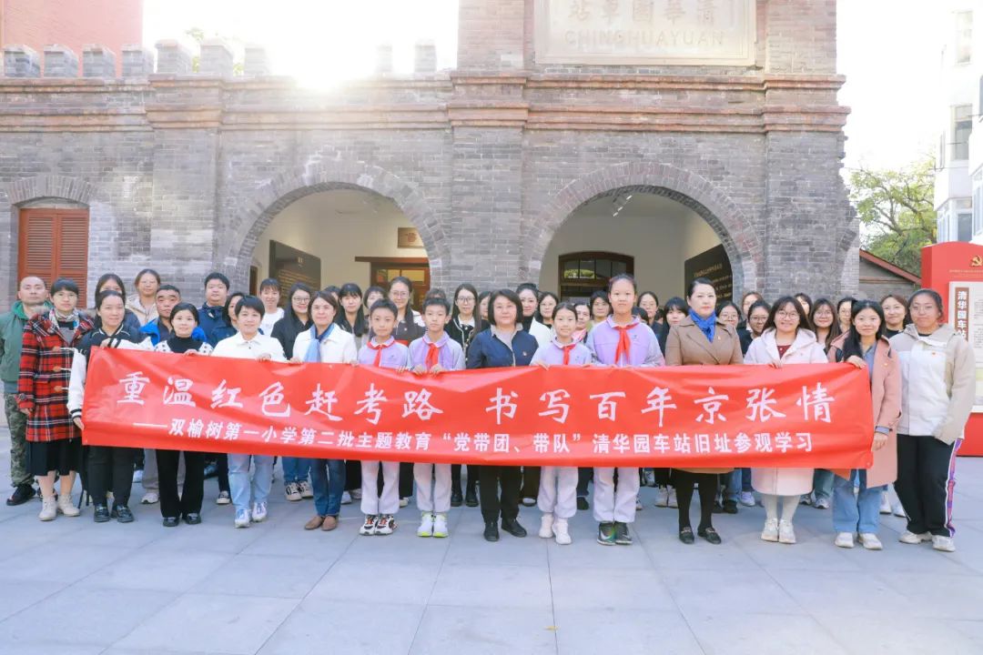 为了深入学习贯彻习近平新时代中国特色社会主义思想,扎实开展好第二批主题教育,筑牢思想根基,凝聚奋进力量,双榆树第一小学党支部开展“重温红色赶考路 书写百年京张情”——第二批主题教育“党带团、带队”清华园车站旧址参观学习活动。11月3日下午,学校党员、团员、少先队员代表一行近50人集体乘车前往清华园车站旧址参观学习。