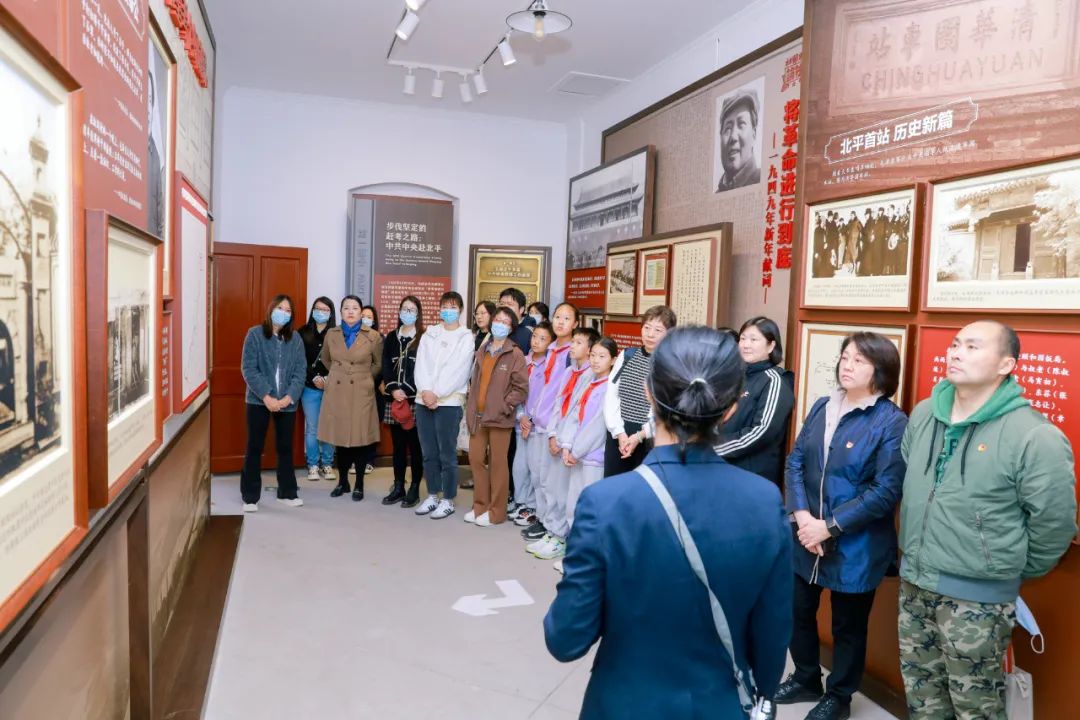 全体党员、团员、少先队员们满怀敬意,在解说员的带领下,重温“赶考精神”,牢记时代使命。走进清华园车站旧址,颇具年代感的铁轨和灰砖拱门的经典建筑将大家带入那个令人难忘的年代。展览包括“步伐坚定的赶考之路:中共中央赴北平”和“坚持党的领导:永葆‘赶考’的清醒和坚定”两部分,解说员在讲解过程中穿插对史料的解读和对修缮过程的叙述,生动地将1949年“进京赶考”的画面呈现在大家眼前。