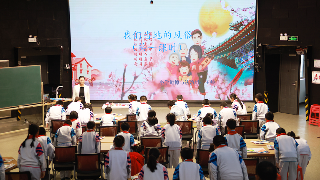 “百里不同俗。”小学部王帅老师为大家展示的课例是四年级《我们当地的风俗》,王帅老师多次多篇论文获得市区级一、二等奖,在海淀区“世纪杯”教学基本功大赛中获得一、二等奖。