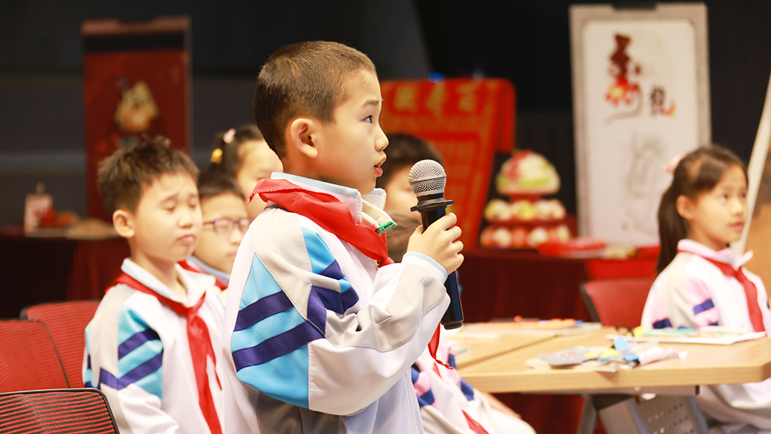 “同学们带来了这么多物品,今天我也带来了一件,你们知道是什么吗?可能同学们不太清楚,这是在我的家乡湖北,谁家有刚出生的婴儿,他的家长就会把鸡蛋染成红色,发给亲朋好友,这叫作‘报喜’。”在同学们分享了自己的“胎毛笔”、奶奶送的银镯子、百日抓周后,王老师也为大家分享了自己的家乡风俗。在现场的温情互动中,同学们了解了出生礼、开笔礼、寿礼、成年礼、婚礼等习俗,也将爱幼、尊师和敬老的传统美德,牢牢记在心中。接下来的课堂上,王老师借助小组合作学习、角色扮演等方式,让大家了解十二生肖的来历和寓意。