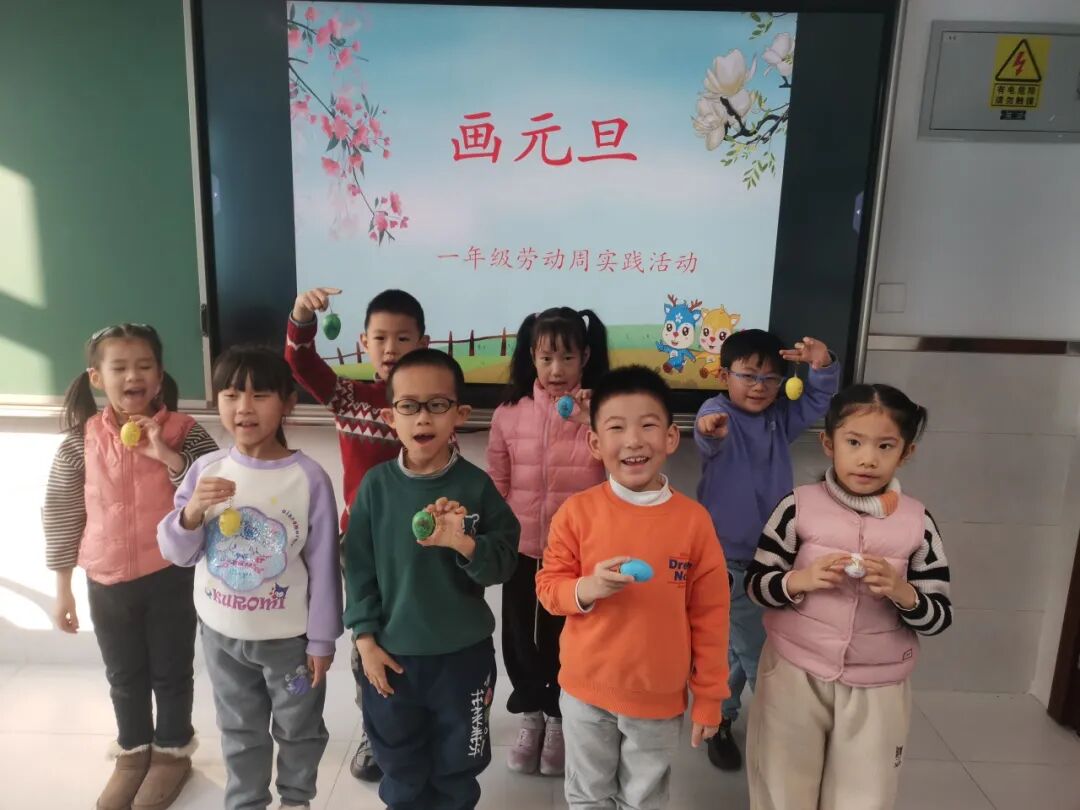 一年级的手工画“元旦”的劳动活动,让学生体会到节日的喜庆!