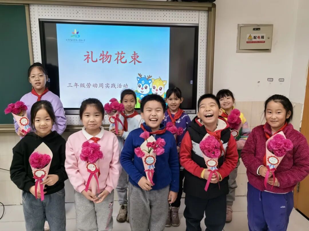 礼物花束的制作,使学生通过纸工劳动体会到节日的氛围。