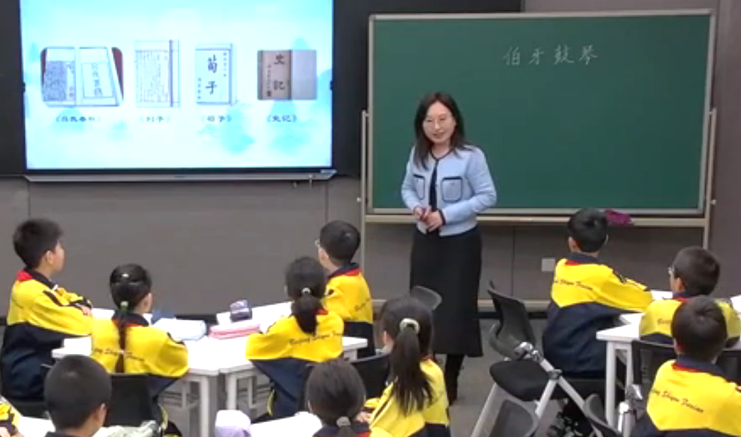 窦丽娜老师展示语文研究课《伯牙鼓琴》。她以“赏千年古音、诵传世佳话——我是经典传诵人”这个情境任务为驱动,为学生搭建了灵动的学习空间。“高山流水觅知音,千古绝唱悟真情。”学生在朗读、理解的基础上,借助资料,进行合理想象,充分感受伯牙的内心,对“知音”的理解越来越深刻。这节课将文言文的学习变为了感悟经典、自觉传承优秀传统文化的活动历程。