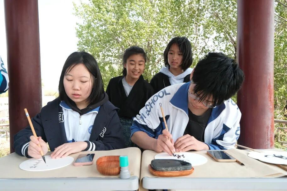 浩然亭成为了书法的世界,同学们执笔不辍,挥毫泼墨,笔尖在扇面及书签上游走,或临摹先贤遗墨,或即兴创作,大家肆意挥洒才情,活动现场墨香四溢。