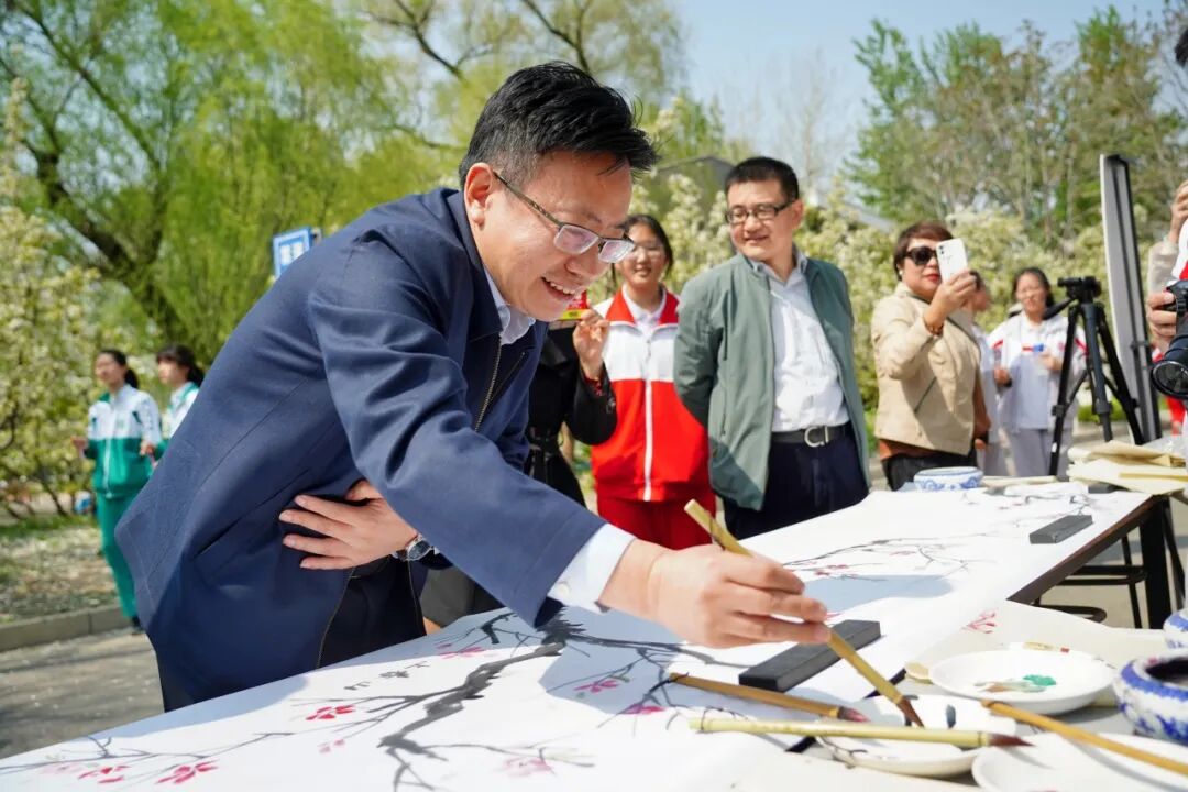 同学们拥有无限想象力,桃山西侧的“百米绘春”活动在陈默老师的指导下,同学们将盎然春意,尽情挥洒在百米长卷上,灼灼桃花、湖光山色、鸟语花香,一笔一划间都流淌着春日的诗意与桃花的生机。