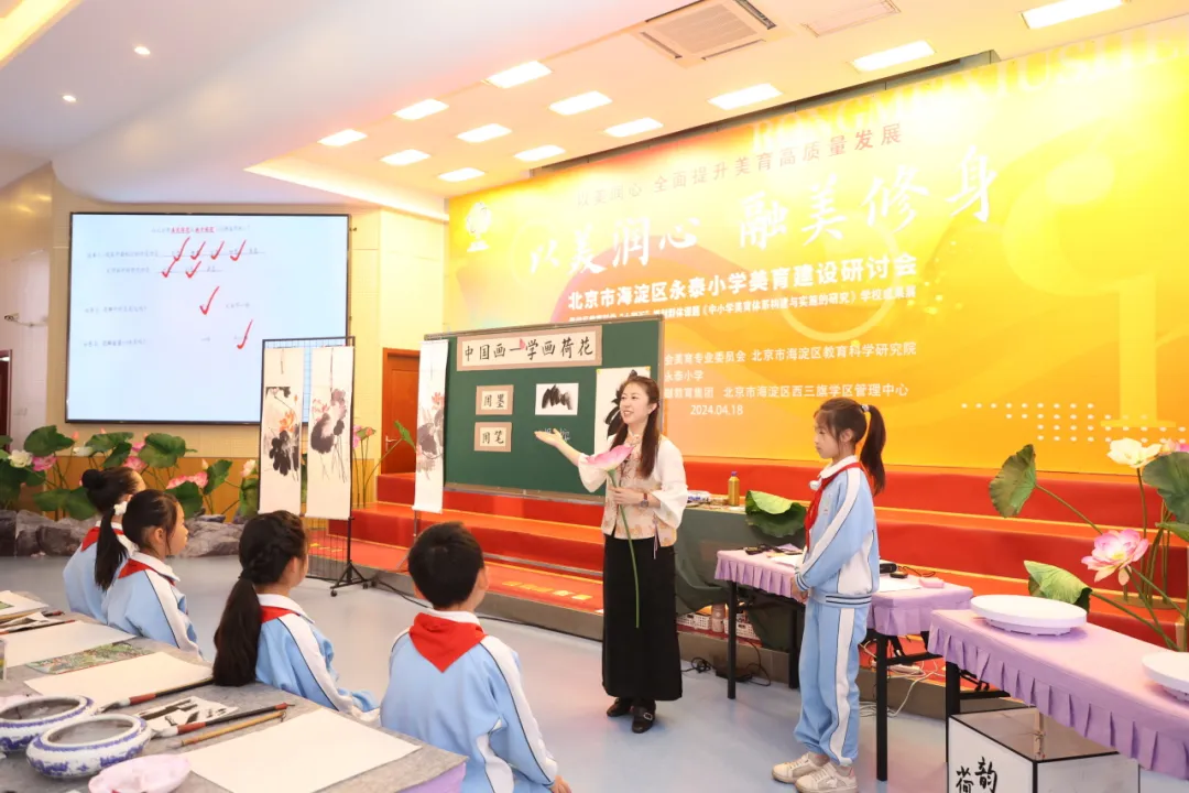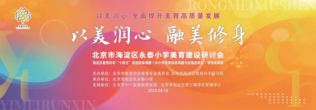 为深入学习宣传贯彻党的二十大精神,进一步加强学校美育工作,强化学校美育育人功能,全面实施学校美育浸润行动,2024年4月18日,“以美润心 • 融美修身”美育建设研讨会在北京市海淀区永泰小学举行。本次会议由北京市教育学会美育专业委员会、北京市海淀区教育科学研究院主办,北京市十一龙樾教育集团和北京市海淀区西三旗学区管理中心支持,北京市海淀区永泰小学承办。