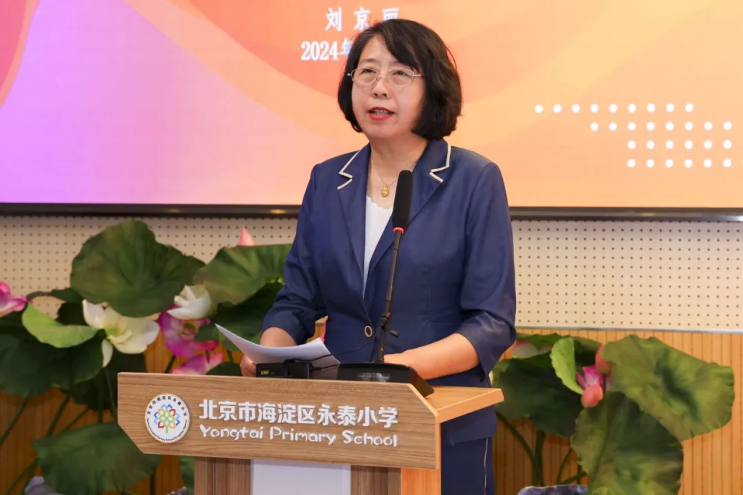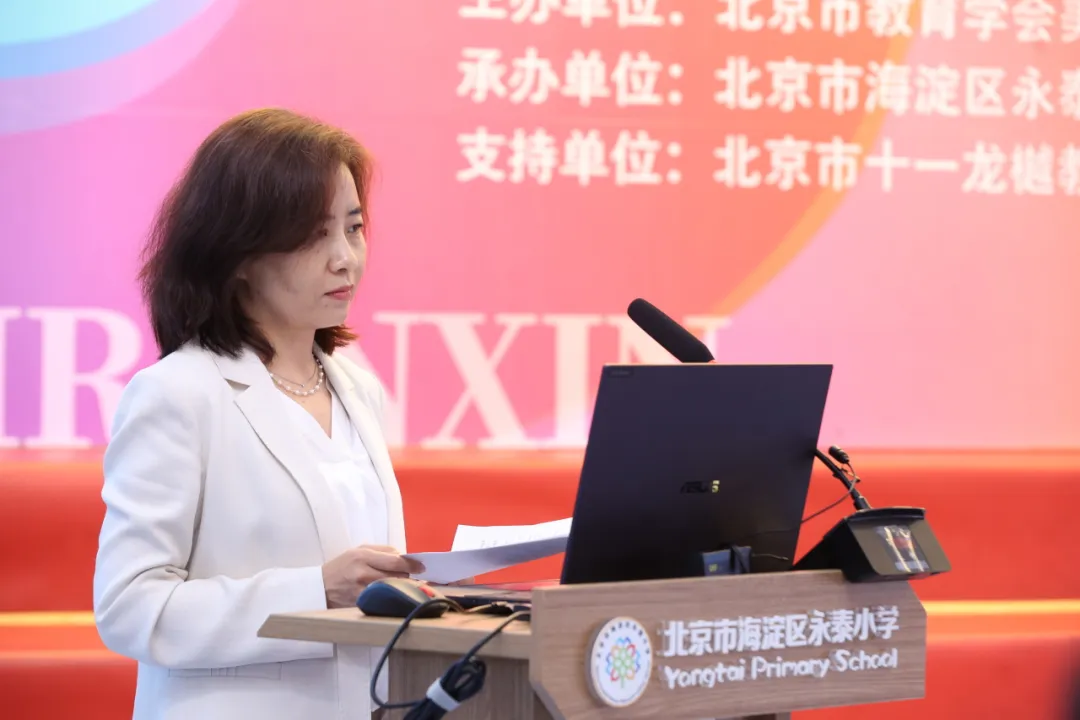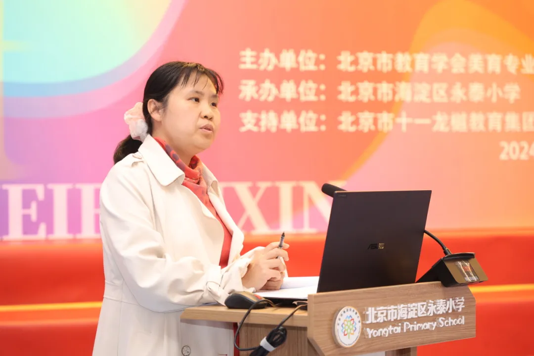 围绕建设美育体系这一时代课题,永泰小学校长刘京丽做主题报告《以美润心·融美修身》——北京市海淀区永泰小学美育体系构建的探索与实践,从“育美实施”“致美创造”“立美评价”“润美管理”四方面,介绍永泰美育体系的整体构建情况。