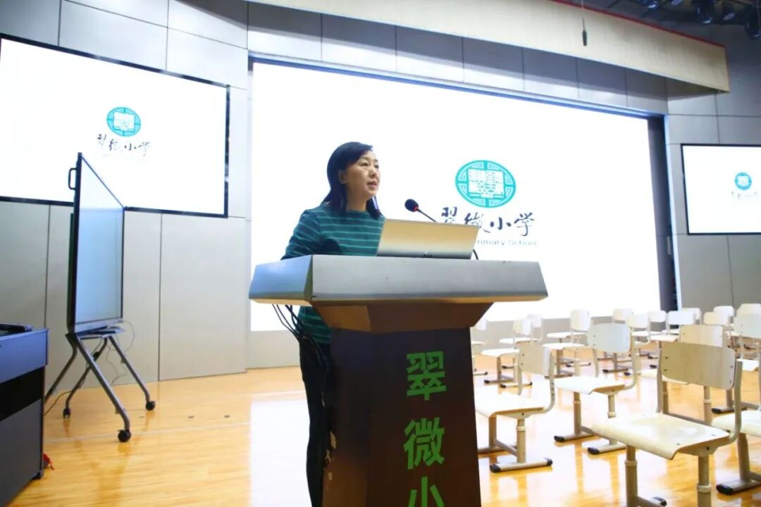 翠微小学党委赵芸副书记以《高质量党建引领学校高质量发展》为题,重点阐述了翠微小学党组织领导的校长负责制的落实情况,及教育集团党委统筹党建工作初步思考与实践。通过优质的集团化党建工作,进一步落实新时代学校党建工作的相关要求,努力探索学校基层党组织在集团化办学中发挥政治核心作用。把党的领导和党的建设融入办学治校各方面、教书育人各环节。