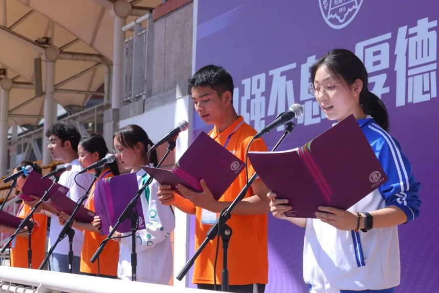 启动仪式后,甘肃各族青少年学生代表和清华附中全体师生共同参加升国旗仪式。在鲜艳的五星红旗下,全场师生高唱国歌,双方学子代表共同深情朗诵清华附中王若曦同学创作的诗歌《石榴籽》。