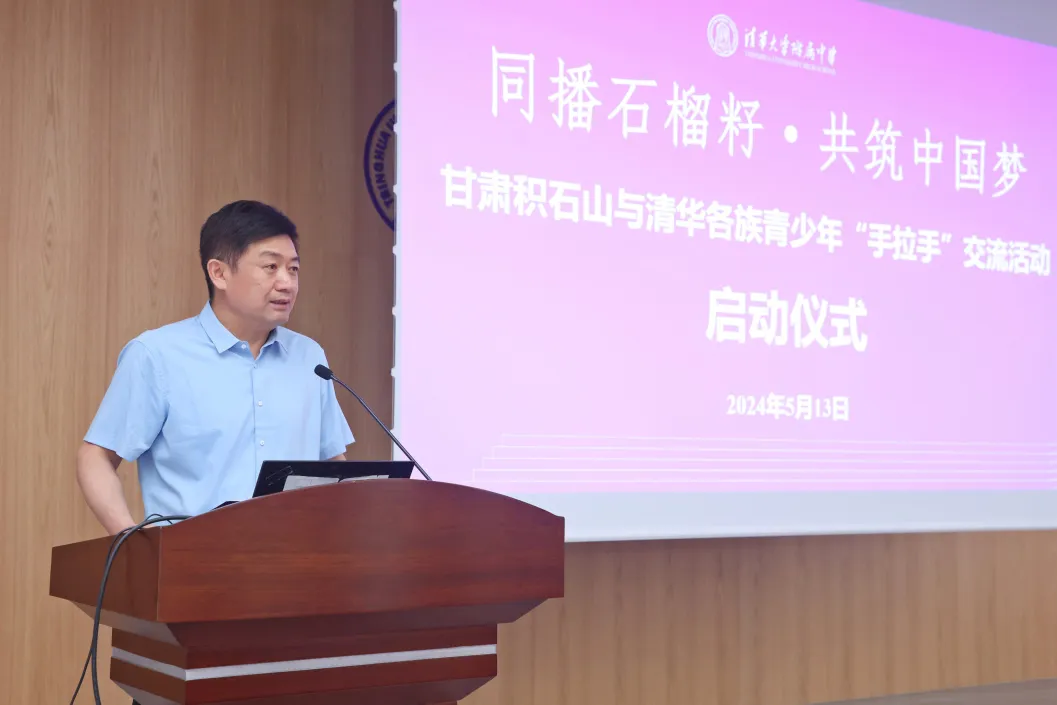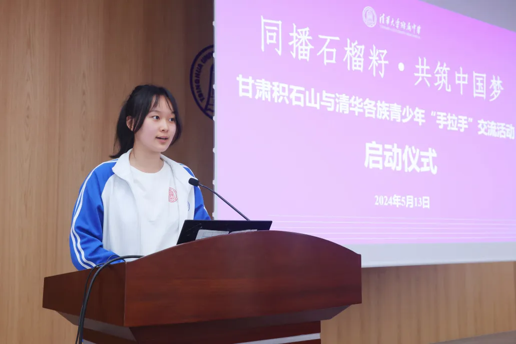 5月13日,“同播石榴籽•共筑中国梦”甘肃积石山与清华各族青少年“手拉手”交流活动在清华附中正式启动。甘肃省民委党组成员、副主任宋树红,清华大学苏世民书院副院长、经管学院教授、甘肃兴华青少年助学基金会理事长钱小军,清华大学党委统战部副部长南彬,清华附中党委书记、北京市民族团结进步协会理事曹海翔,清华附中副校长白雪峰,国家民委民族团结促进司交融促进处三级主任科员关琳馨,中国民族报社记者郑涵月,甘肃省民族事务委员会政策法规与理论研究处副处长侯长彪,甘肃省民族团结进步协会副会长苏小林出席活动。甘肃省临夏回族自治州积石山保安族东乡族撒拉族自治县的各族师生代表,清华大学各族青年学生代表,清华附中初二、高一学部学生代表一起“手拉手”,深入互动交流。