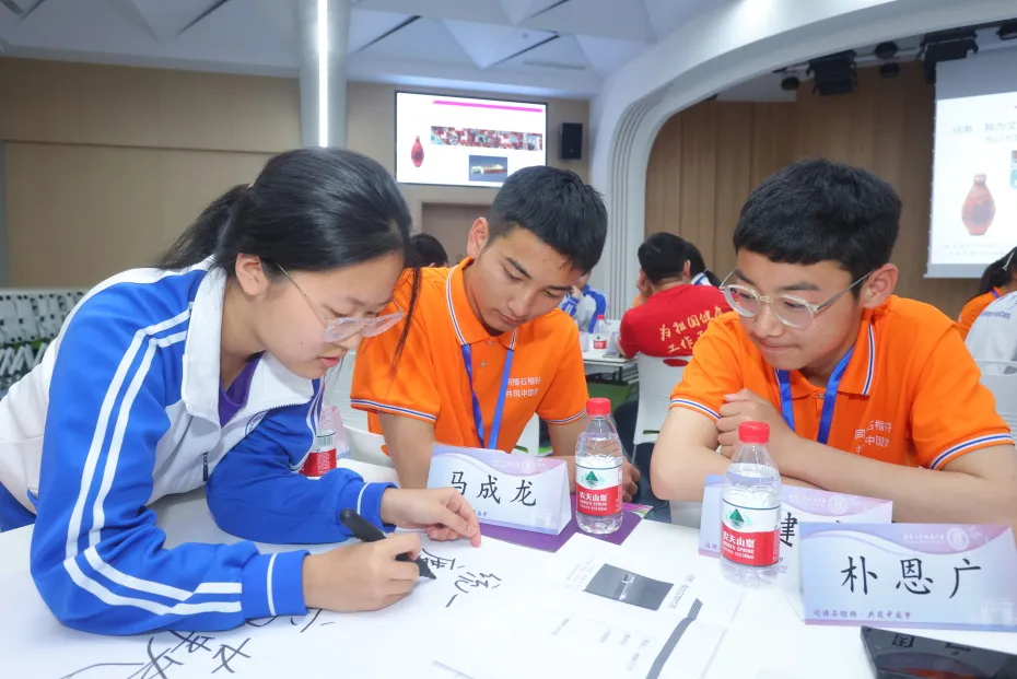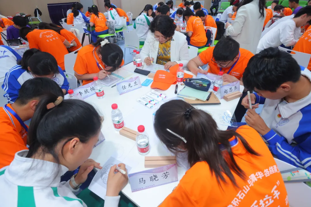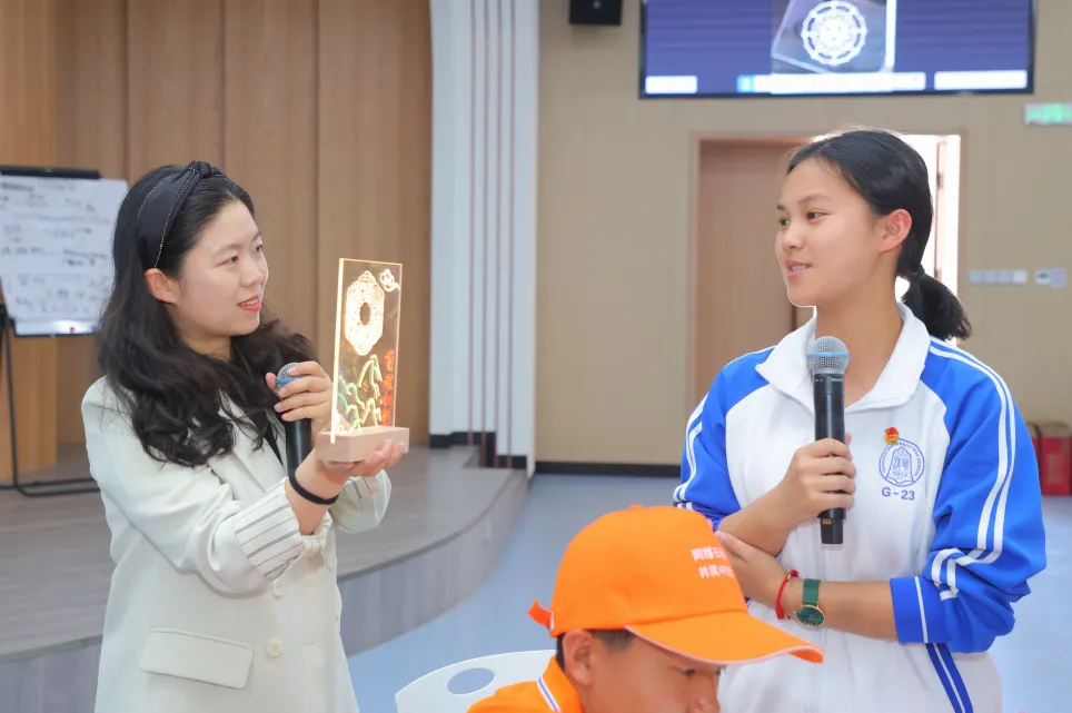 课堂的第二部分《同心筑梦,共绘文明之光——文创设计》,清华附中美术教研组裘昀老师带领大家领略中国传统纹样的魅力。同学们亲自设计、制作传统纹样,感知中华之美。同学们把自己亲手绘制的作品赠与小伙伴,互诉情谊,互道珍重。