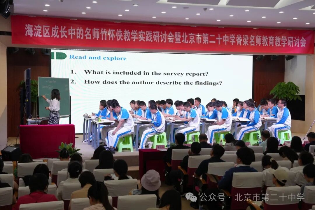 2024年5月28日,由海淀区教师进修学校主办、北京市第二十中学承办的海淀区成长中的骨干教师竹怀侠实践研讨会暨北京市第二十中学脊梁名师教育教学研讨会成功召开。本次活动由北京市第二十中学李久省副校长主持,北京市海淀区教师进修学校英语教研员代表陶常娥,以及二十中学党委书记孙玉柱书记、张万祥副校长、吴玉国副校长、曹宇红副校长、宋诗伟副校长、吴刚校长助理、冯彦国主任和聂桂秋副主任全程参与本次活动。参加研讨会的有海淀区高一、高二年级英语教师和北京市第二十中学的骨干教师和学校名师工作站的导师和学员老师,二十中学集团校各个校区的英语教研室英语教师。