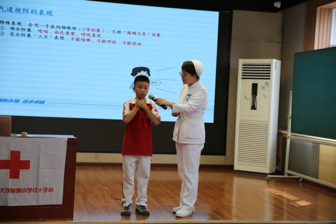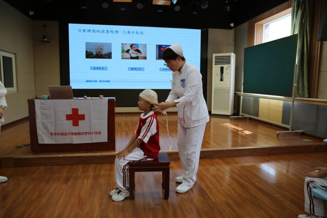 9月6日,北外附小红十字会邀请紫竹院卫生服务中心医护人员走进校园,针对学生特点,为一、二年级学生进行“急救知识进校园 生命守护在身边”应急救护知识与技能培训。