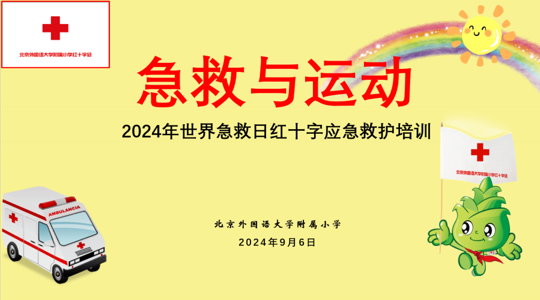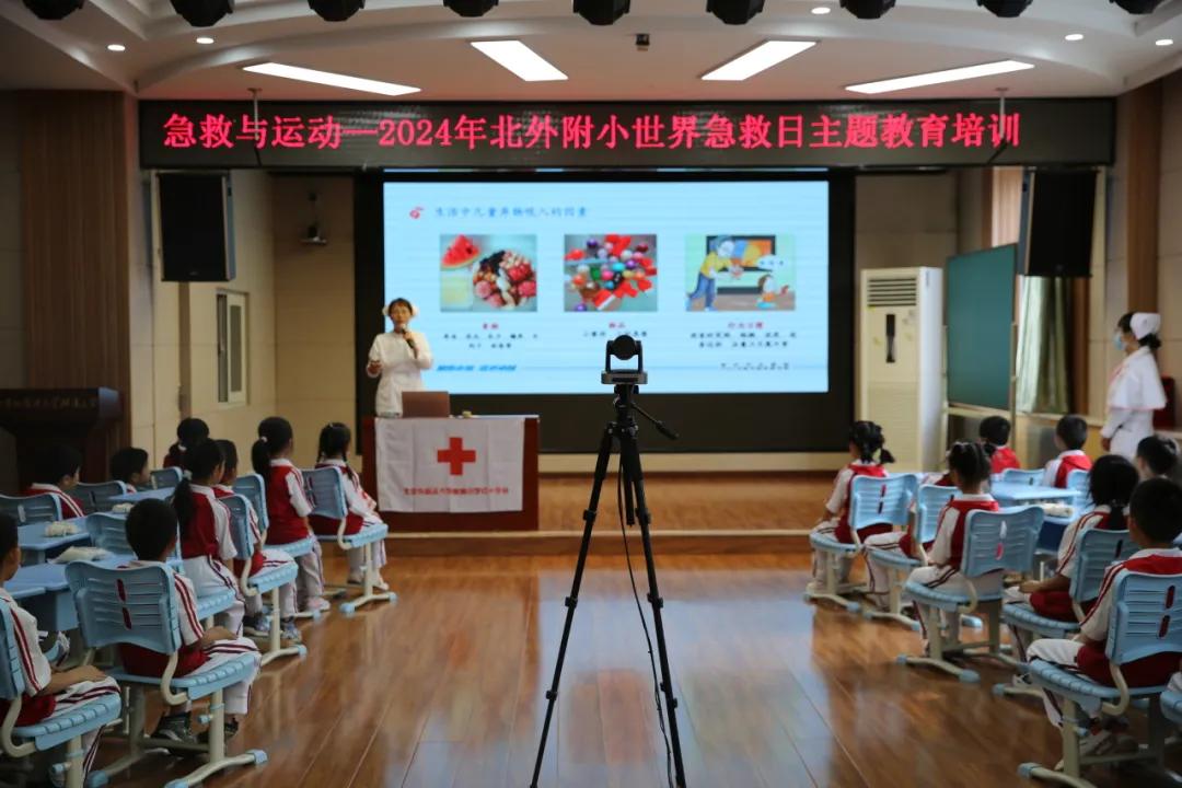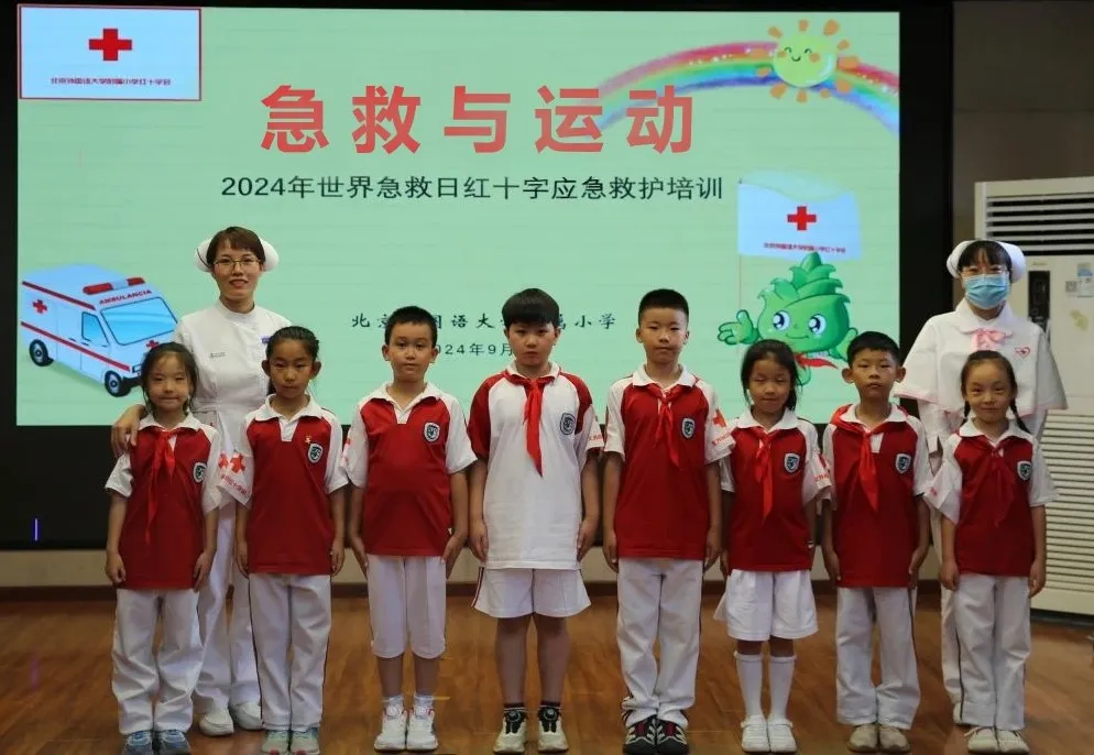 2024年9月14日,是第25个“世界急救日”,今年的主题是“急救与运动”。为加强应急救援知识的普及,引导学生从小掌握急救知识与急救技能技巧,培养互助精神,在北外附小党总支的领导下,学校红十字会开展“急救与运动”2024年世界急救日主题教育培训活动。
