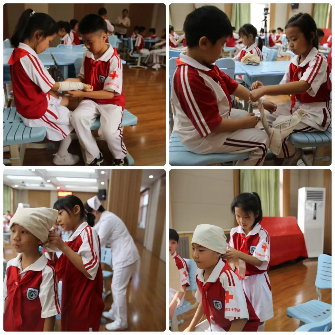 同学们认真听、仔细练,全神贯注、互相配合,在愉快的实践中初步掌握了包扎技能,树立了正确的急救观念,提高了安全意识和急救技能,为以后正确应对运动中遇到的突发情况,树立了信心。