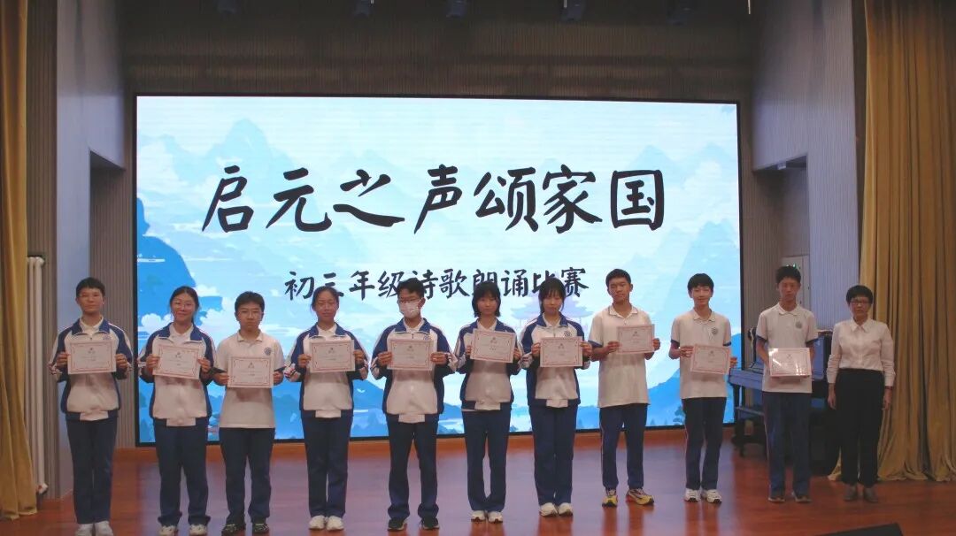 初三年级举办了“启元之声颂家国”朗诵比赛,全年级一共分为十个小组,在比赛过程中,同学们全身心地投入,分别朗诵了毛主席诗词,艾青、余光中等诗作家的名诗名篇。同学们通过这个机会,用朗诵和动作展示等方法更加深刻地理解了诗词内容内涵,提升了潜在的文学素养,还锻炼了舞台能力和临场发挥能力。