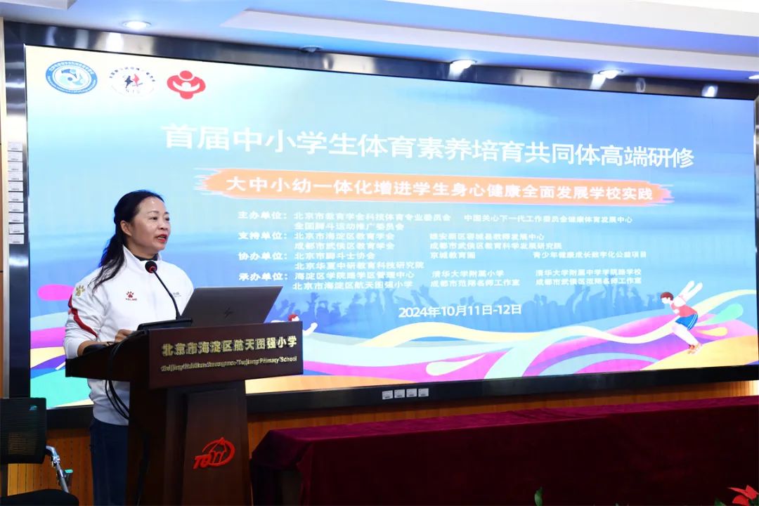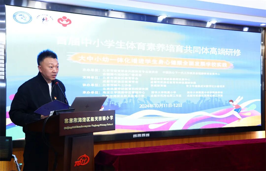 2024年10月12日,航天图强小学作为北京市首所脚斗娃体教融合示范校协办并参与了首届中小学生体育素养培育共同体高端研修“大中小幼一体化增进学生身心健康,全面发展学校实践”活动。