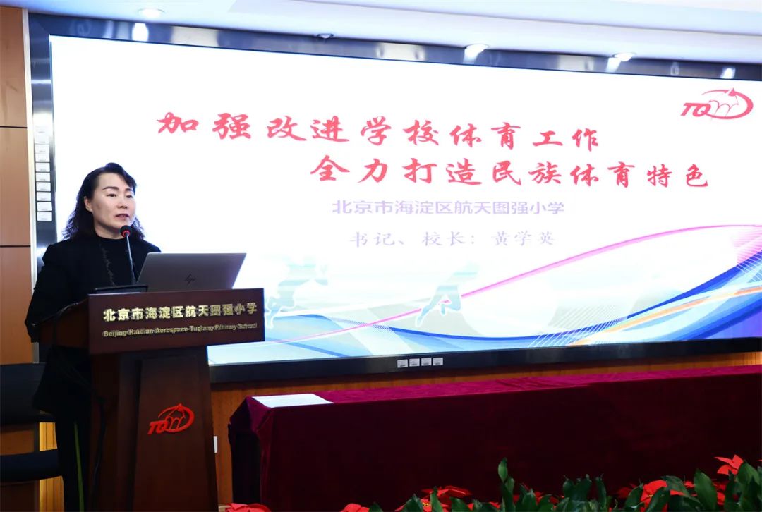 展示活动后,学校书记校长黄学英以“加强改进学校体育工作,全力打造民族体育特色”为主题,做体育工作报告,展现航天图强体育工作建设的亮点和特色,彰显民族原创体育项目的魅力与活力。