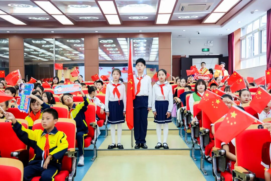 开幕式伊始,少先队员代表陶宗一向大队辅导员报告人数,大队辅导员宣布大会开幕。出旗仪式庄重肃穆,全体人员敬礼,国歌奏响,激昂旋律在会场回荡,激发起大家对祖国母亲的热爱与崇敬之情。紧接着,《中国少年先锋队队歌》唱响,红领巾飘扬,队歌嘹亮,鼓舞着每一位少先队员奋勇向前。