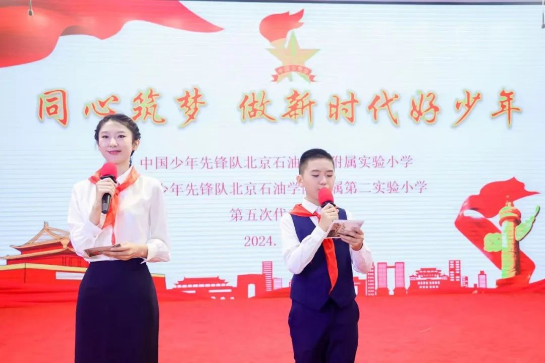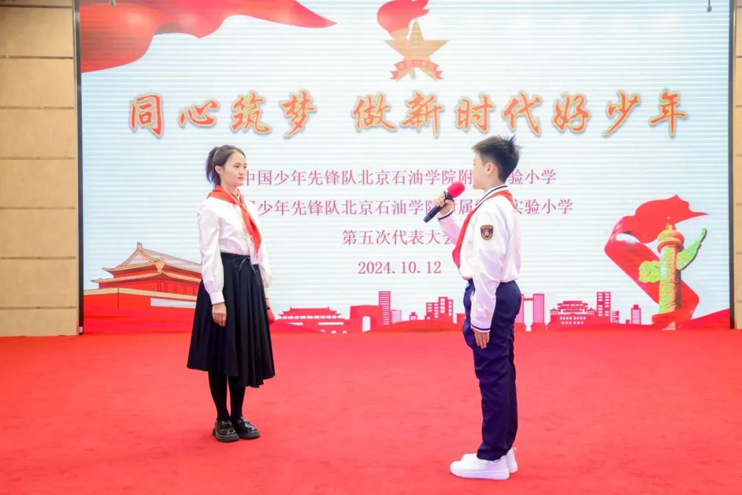 2024年10月12日上午,天朗气清,惠风和畅,中国少年先锋队北京石油学院附属实验小学与北京石油学院附属第二实验小学第五次代表大会在庄重且热烈的氛围中隆重开幕。