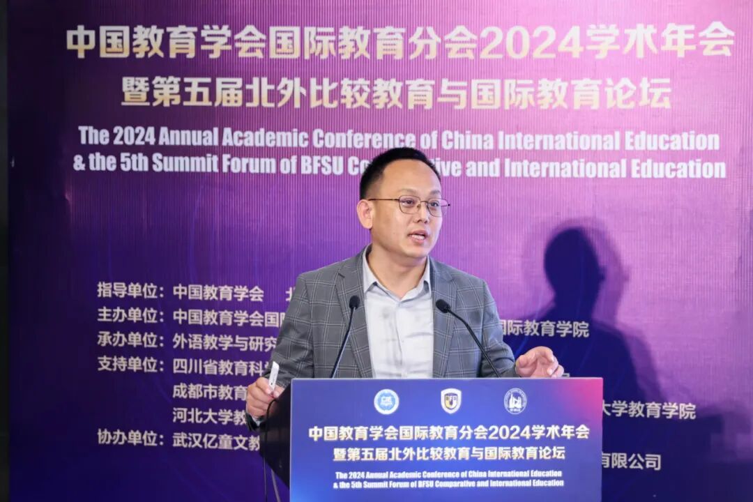 国际教育分会副理事长杨慧文致辞,他表示,高水平教育对外开放是加快建设教育强国的必然要求,加强中国教育与世界各国合作是提升我国教育的国际影响力、竞争力和话语权的重要途径。他希望通过本次论坛为大家搭建一个开放、共享、合作的交流平台,促进彼此深入交流、互相学习、共同进步。