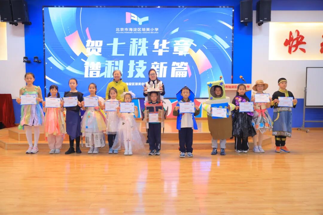 在成果展示环节,来自不同年级的学生代表分享了他们的科学学习成果。其中涵盖了“智乐小讲师通识课堂”“DI挑战赛项目”“海淀区小院士和家长代表”“科创社团成果展示”等。其中,同学们在“环保创意服装秀”中的精彩表演,将启动仪式带入了高潮,赢了师生一片喝彩。每一件作品都凝聚着学生们的心血和智慧,充分展示了他们在科技领域的探索和创新。