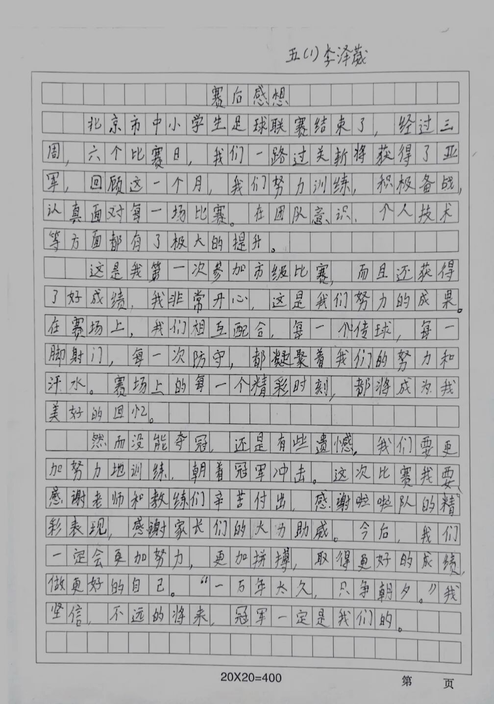 比赛结束后,五一班的孩子们纷纷写下自己的参赛感言。孩子们说:
