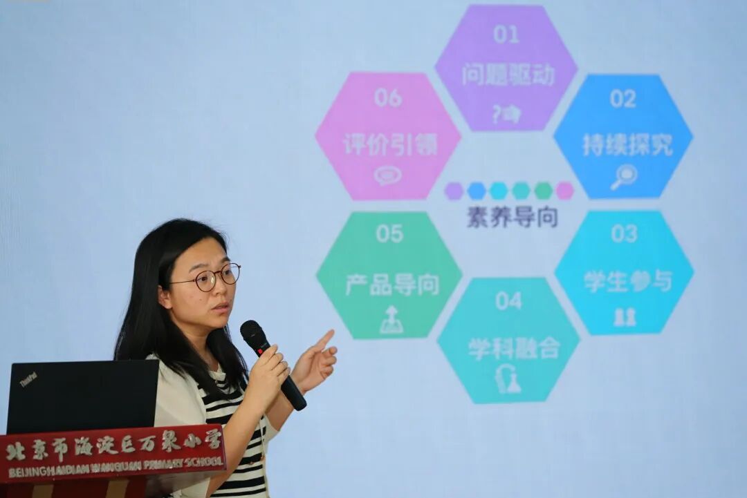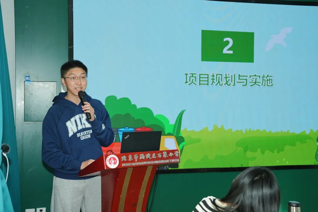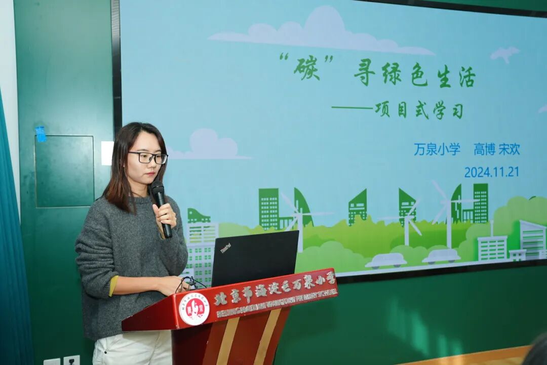 北京市海淀区万泉小学教师高博和宋欢以《“碳”寻绿色生活》为主题,从实施背景、过程推进和成果展示等方面,进行项目化学习案例分享。