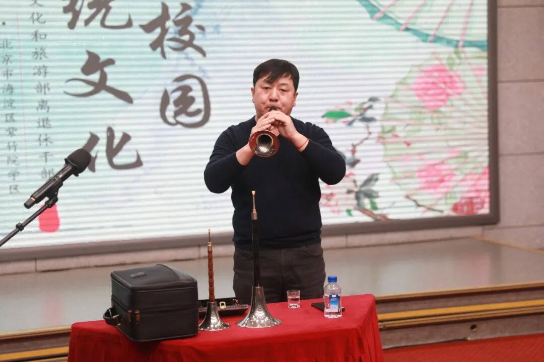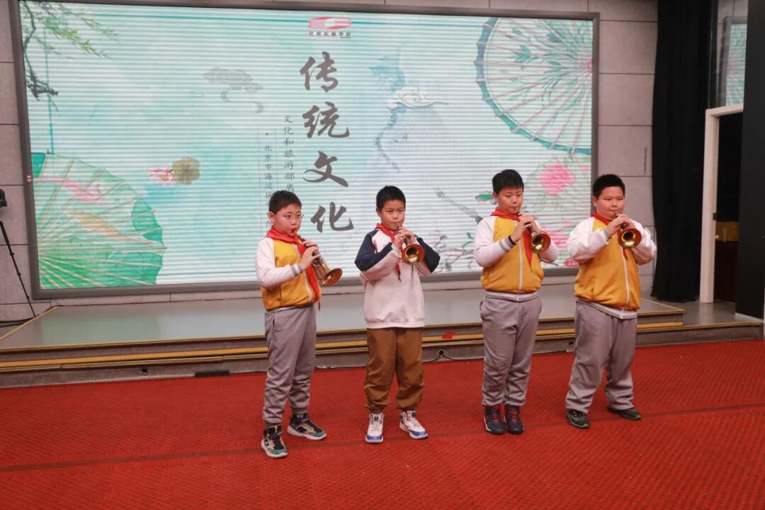 活动在北京实验学校(海淀)小学吹打乐团的孩子们演奏的《伐木》和《猪八戒背媳妇》等经典曲目中拉开帷幕。孩子们娴熟的演奏技巧,细腻的情感表达,展现了唢呐这一传统乐器的无穷魅力,收获了现场观众的阵阵掌声。