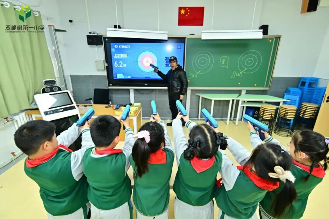 射者,仁之道也。当孩子们拿起配备了AI传感的电子弓箭,根据指令快速设计“拼音生字”靶,习六艺,品文字。