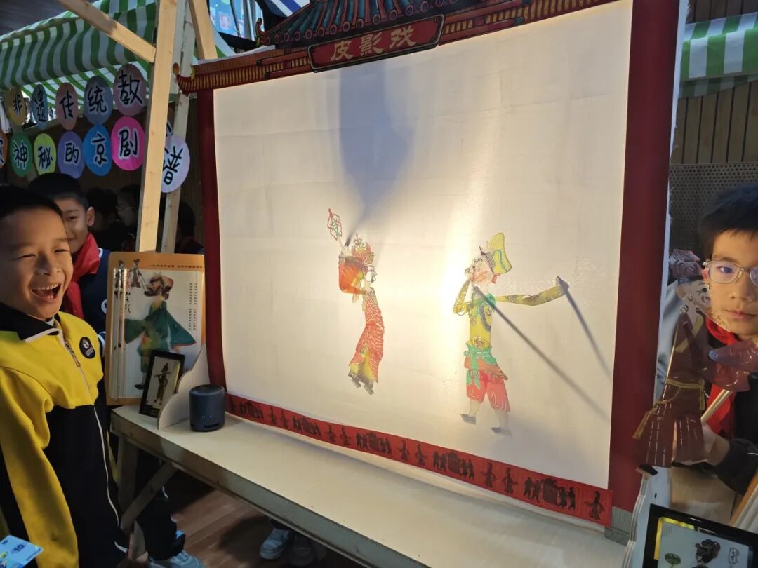 每个项目组都布置了自己的展区,吃的、玩的、用的,艺术品制作、表演体验,门类可真是不少。剪纸体验区,同学们学会了如何运用对称和连续图案来创造美丽的窗花;皮影戏前,看看皮影表演,再亲自体验一番。糖画制作台,排出了长长的队伍,画一辆自行车还能吃,有趣又甜蜜。最令人兴奋的是糖葫芦区,学生们不仅了解了糖葫芦的制作过程,还品尝到了酸甜可口的糖葫芦。