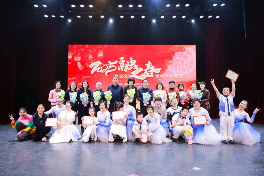 在艺术面前,每一个孩子都是平等的、都同等重要!艺术是表达情感的方式,也是灵魂深处的共鸣,更是孩子们打破内心壁垒、与世界对话的重要途径。为向特需学生提供“处处皆舞台、人人皆出彩”的机会与平台,1月12日,由海淀特教中心主办、海淀区青少年活动管理中心支持的2025年海淀区“融之春”学生艺术展演活动顺利举行。中国残疾人联合会康复部主任纳新,北京市残疾人联合会副理事长董连民,北京市残疾人康复中心主任王琦,海淀区残疾人联合会党组书记、理事长刘永泉,海淀区青少年活动管理中心书记刘昊,海淀区教委美育和校外教育科科长曹芳,海淀学区管理中心主任高雪冬,海淀区永泰小学校长李雨梅出席本次活动。来自28所学校的师生、家长两百余人齐聚一堂,欣赏由普特学生共同演绎的艺术华章。