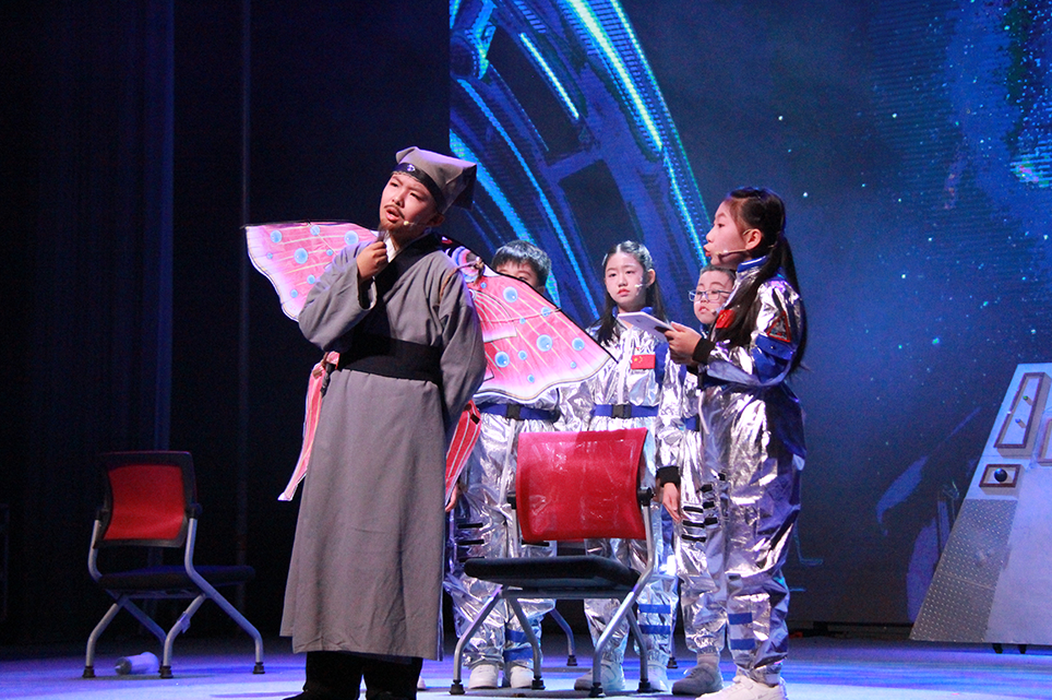 五年级8班 陈爱马:这次我有幸扮演了和玥玥这个角色。在紧锣密鼓的排练过程中,我们不厌其烦地磨练着每一个细节,从精准的走台步到道具恰到好处的安放,再到每一个动作和表情的拿捏,这些人物鲜活而富有生命力。这次的演出经历不仅让我深刻领悟到,无论面对何种挑战,都不能轻易言弃,更让我明白了团队合作的力量,它像一座桥梁,将我们紧紧联结在一起。同时,通过对陶成道和航天船的深入探索,我对它们的世界充满了无尽的好奇与敬畏。