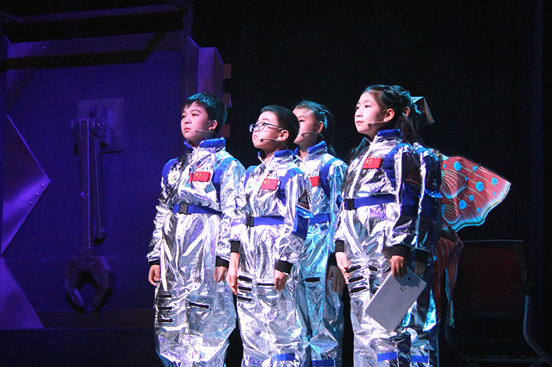 四年级4班 武妍馨:我饰演的角色是队长。刚开始收到演出消息时,我很开心。那时候,我心里一直在想:不就是演一场戏吗,小菜一碟!但是开始排练之后,我才体验到了当演员的不容易。有时候会因为口干而口齿不清晰,有时候还会因为台词背不下来而感到苦恼。经过一个学期的排练,现在马上就要上台演出了,我的心情既紧张又激动。非常感谢学校给我这次演出的机会,也非常感谢在这部剧里默默付出的导演和老师们,希望这次演出能够顺利进行。也祝愿中国的航天员们早日登上月球,造就航天奇迹!
