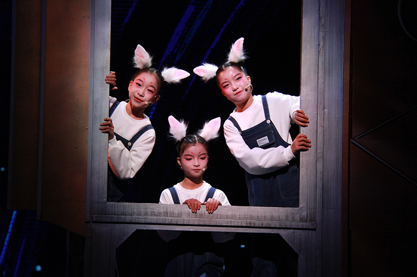 四年级4班 王钥涵:我这次饰演的角色是玉兔冬。这是我首次在荣臻礼堂登台表演,内心既激动又开心。起初我以为表演是件简单的事,然而通过这次活动,我才明白要演好一部剧目,演员的动作、语言、神态和声音都得饱含感情。同时一部剧的成功,不单单依靠演员,还有许多像导演、灯光师、音效师及学校老师们等幕后人员的默默付出和努力。我们这个大家庭所有成员,大家齐心协力,成就了《天宫少年》这部精彩的舞台剧。