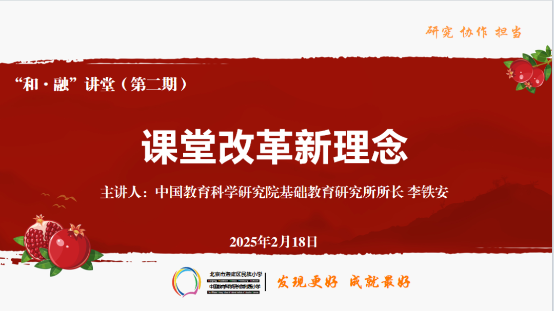 2月18日,第二期“和·融”讲堂邀请到中国教育科学研究院基础教育研究所李铁安所长,以“课堂改革新理念”为主题开展了主题讲座。