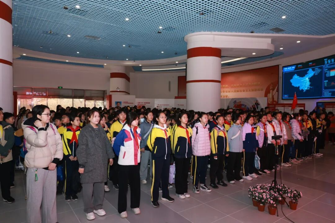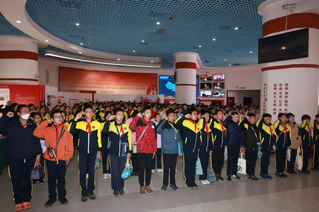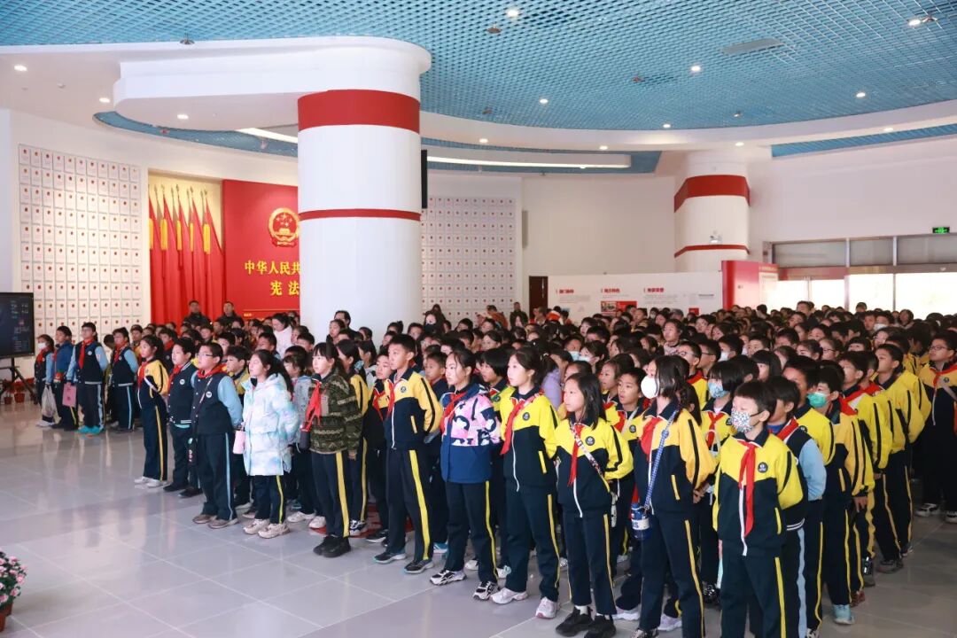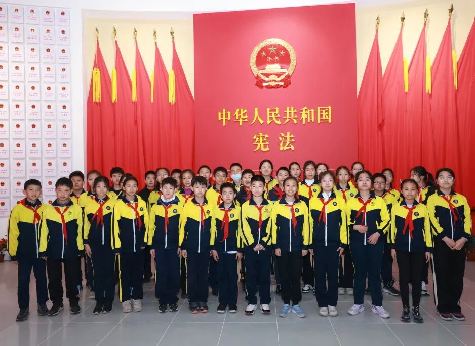 “我宣誓:忠于中华人民共和国宪法,维护宪法权威……”在模拟宪法宣誓厅,学生们神情庄重,右手举拳,跟读宪法宣誓词。洪亮的童声回荡在会场,红领巾与宣誓台前的国旗交相辉映。仪式教育最能触动心灵,这一刻的庄严感,会让孩子们终身铭记宪法的分量。