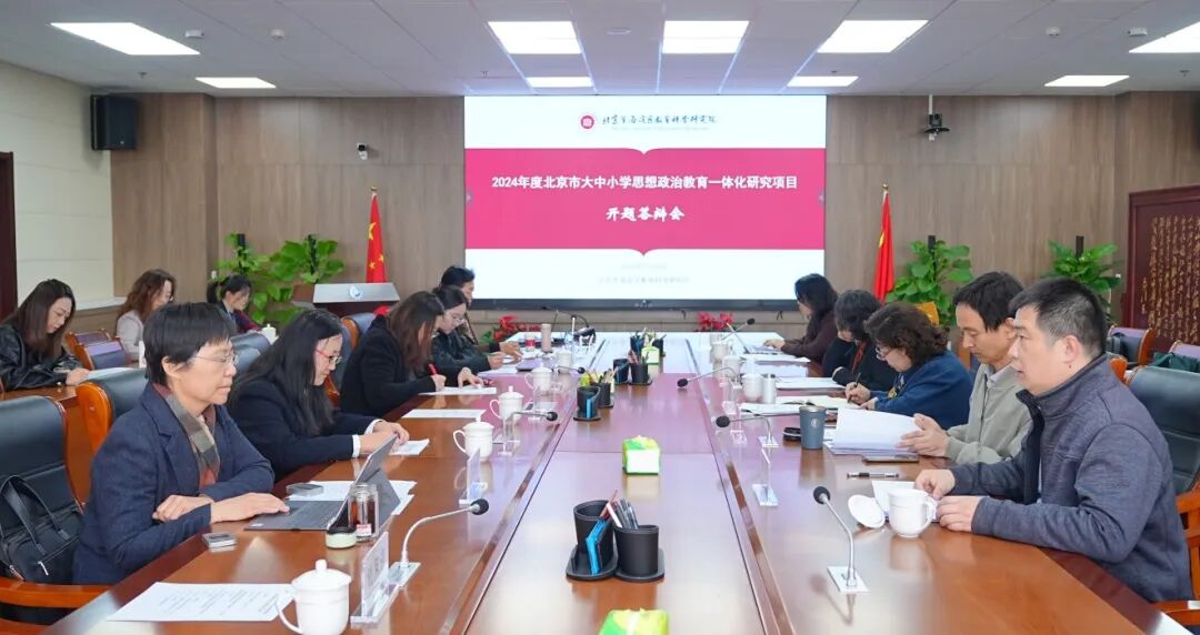 2025年3月26日,海淀区教科院组织召开“2024年度北京市大中小学思想政治教育一体化研究项目开题会”,北京市学校德育研究会副会长尹丽君、北京教科院德育中心主任谢春风、海淀教科院院长吴颖惠、海淀教委宣传科科长章军出席开题答辩会,会同7所学校课题负责人及课题组核心成员,共同围绕大中小学思想政治教育一体化的理论与实践问题展开深度研讨,破解育人断层难题,构建全链条思政生态。会议由海淀区教科院德育心理中心主任王瑞主持。
