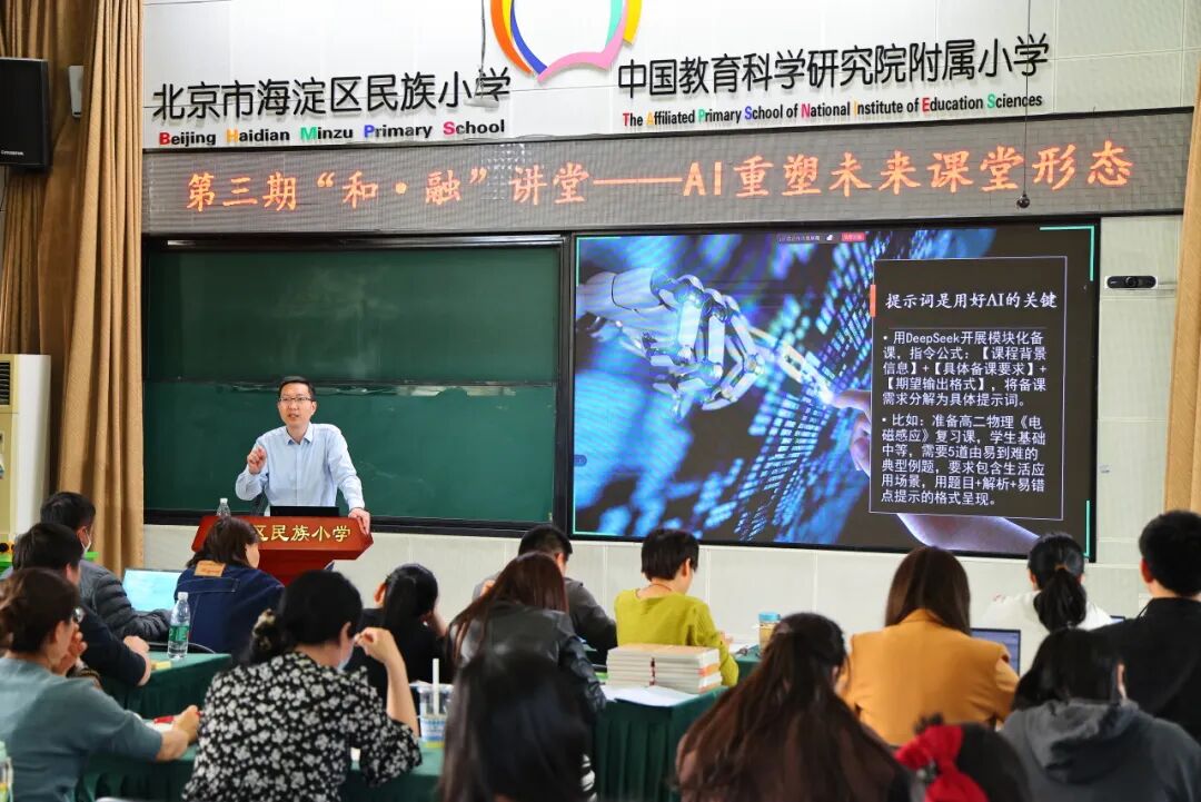 海淀区民族小学第三期“和·融”讲堂特别邀请到中国教育科学研究院专家,以“AI重塑未来课堂形态”为主题,开展了精彩的讲座。