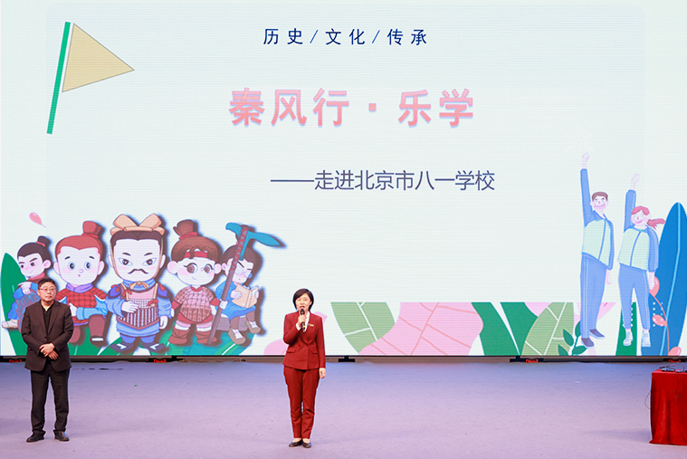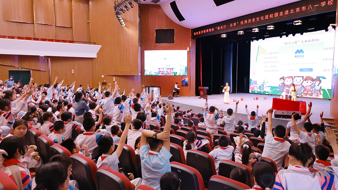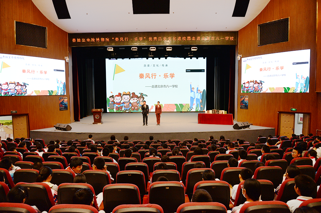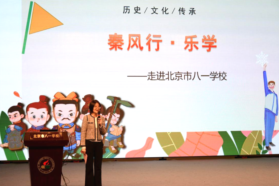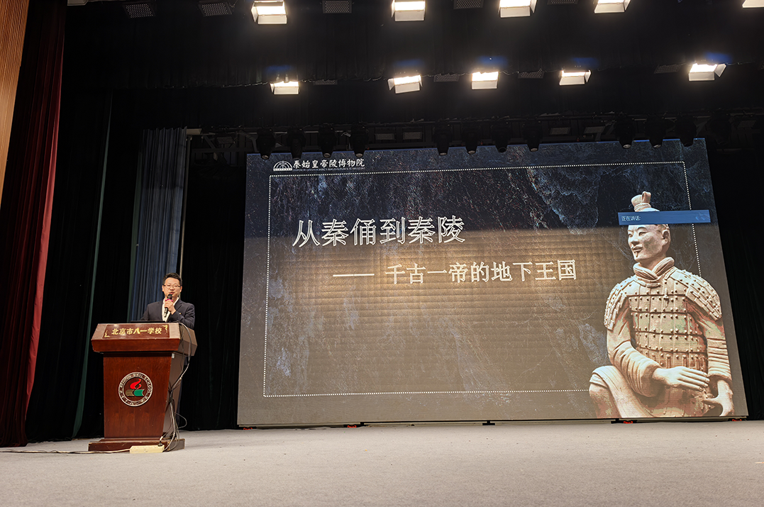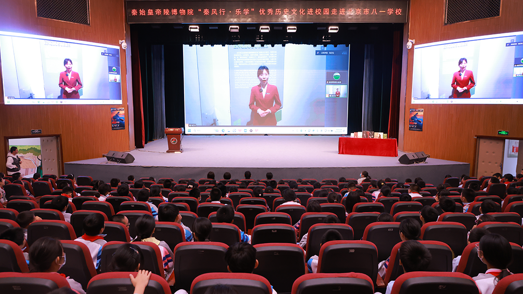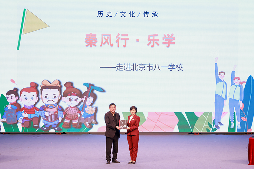 2025年4月10日,陕西省西安市秦始皇帝陵博物院社会教育部的老师们,用一场“秦风行·乐学”优秀历史文化主题活动,带领八一学校预备年级师生穿越千年历史,再现秦时雄风。此次活动,也是秦始皇帝陵博物院“秦风行·乐学”优秀历史文化进校园系列活动的首站。秦始皇帝陵博物院社教部主任农茜、八一学校党委书记沈军现场出席。秦始皇帝陵博物院党委副书记、副院长田静,通过视频致辞。活动由博物馆讲解员张志威、饶琳两位老师主持。