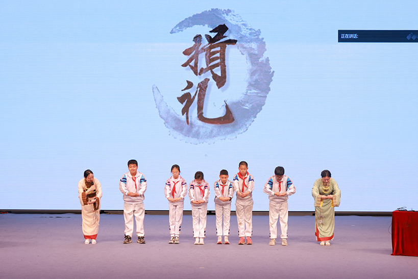 她请预备年级同学,向秦始皇帝陵博物院的老师们行“揖礼”,通过正式且古老的礼仪方式,向老师传达内心深处的敬重之情表示敬意和感谢。