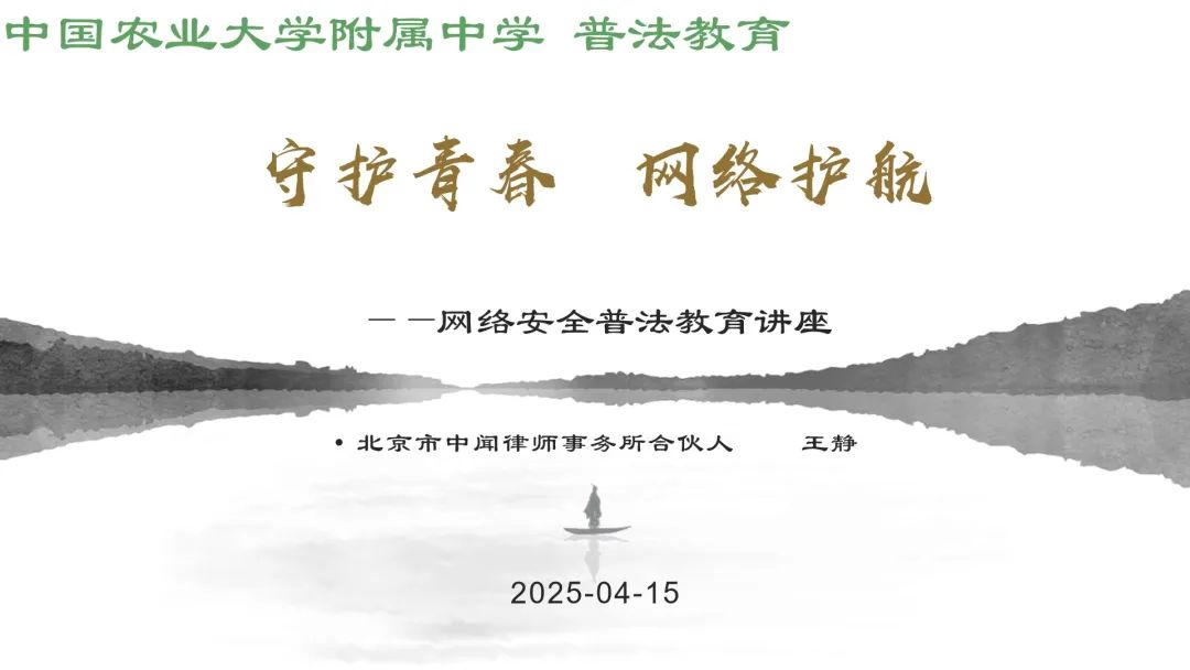 为增强青少年网络安全意识,普及相关法律法规,2025年4月15日,第十个国家安全日,中国农业大学附属中学高二年级特别邀请北京市中闻律师事务所合伙人王静律师,为同学们带来了一场主题为“守护青春,网络护航”的网络安全法治教育讲座。本次讲座通过真实案例分析、法律条文解读和实用建议分享,帮助同学们认清网络犯罪的隐蔽性和危害性,提升自我保护能力。