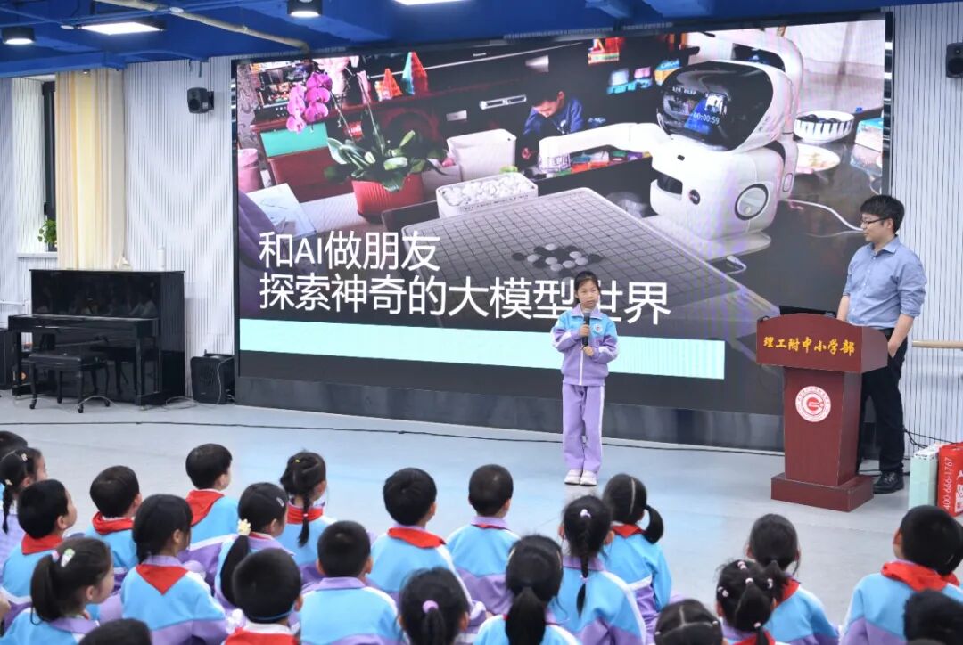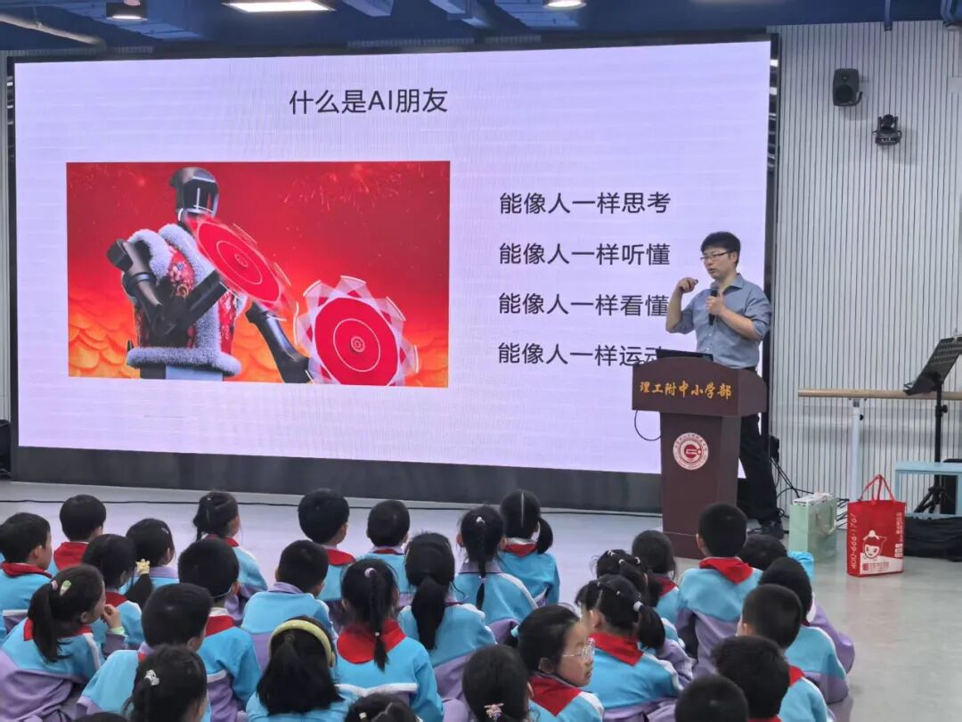 当不到两岁的AI豆包在屏幕上为同学画出会跳舞的结界兽,当AI海绵将一张开学照片演奏出开学歌曲《校园新旅程的快乐启航》,在北京理工大学附属中学小学部的多功能厅里,理工少年大讲堂第二讲《和AI做朋友 探索神奇的大模型世界》用代码与想象力为孩子们架起通往未来的桥梁。