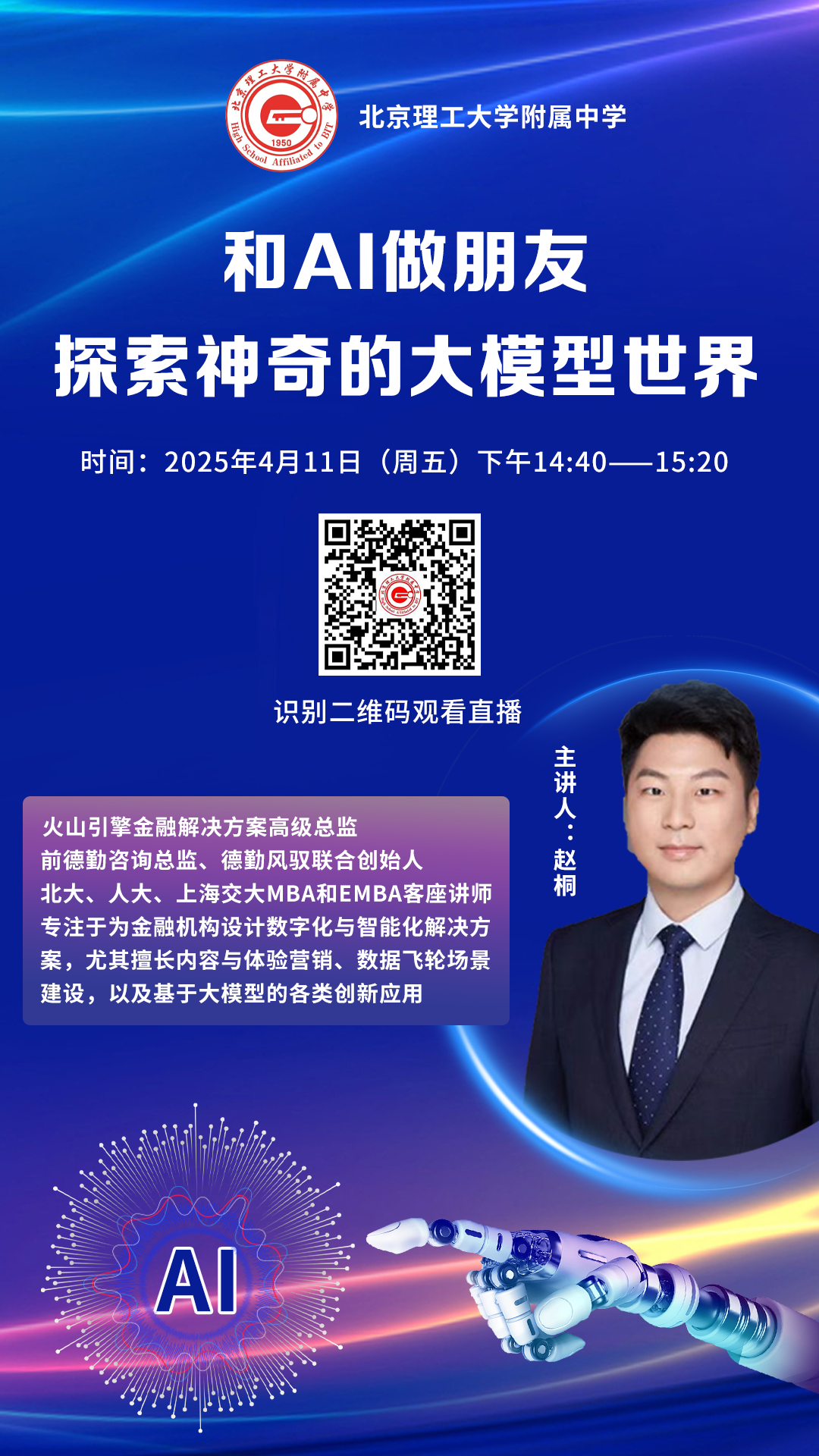 这场持续一小时的智慧探险,没有枯燥的说教,只有会思考的代码与敢做梦的童心在对话。当脑机接口视频里瘫痪少年重新迈步,前排女孩悄悄在笔记本画下“会跳舞的义肢”;而那个说要发明“自动打仗机器人”的男孩,又在草稿纸角落补上“但要有停止按钮”。“展望未来,你想发明什么?”孩子们意犹未尽地带着这个问题离开讲堂,他们或许还不懂神经网络与电力革命的份量,但心中跃动的科技火种,正悄然照亮未来发明家的星辰大海。