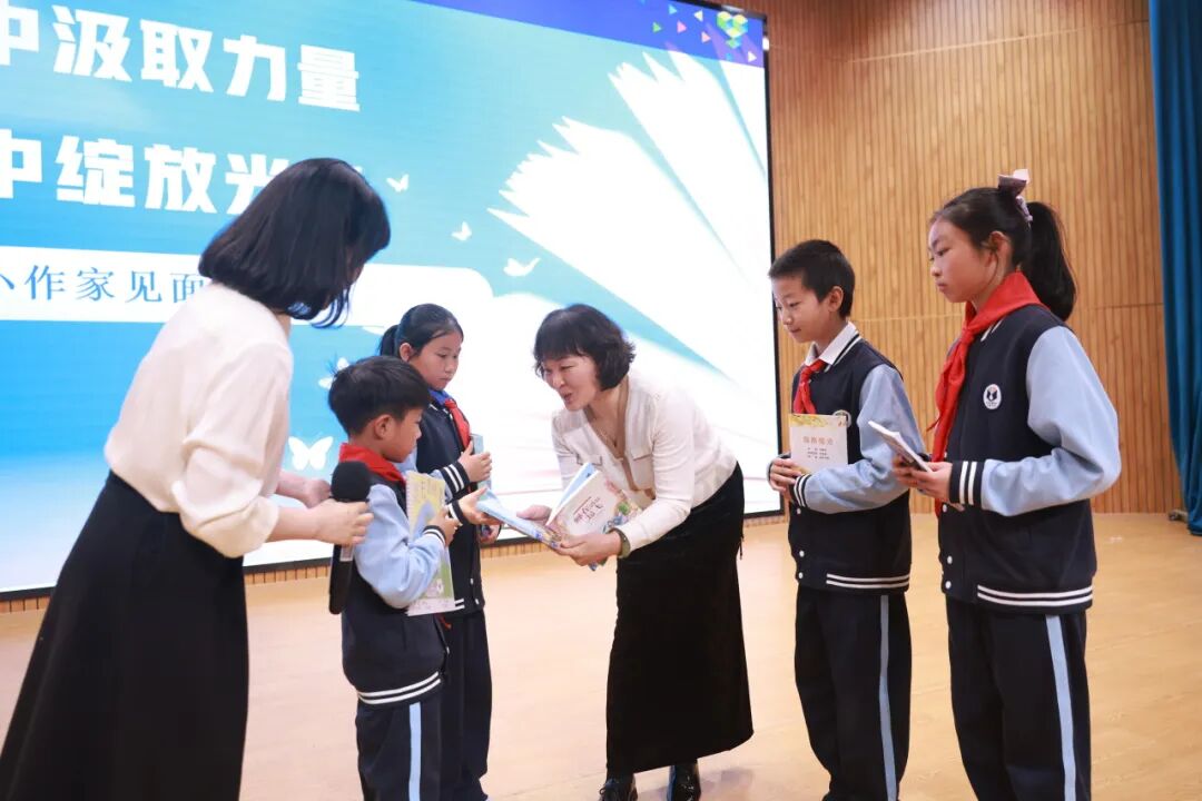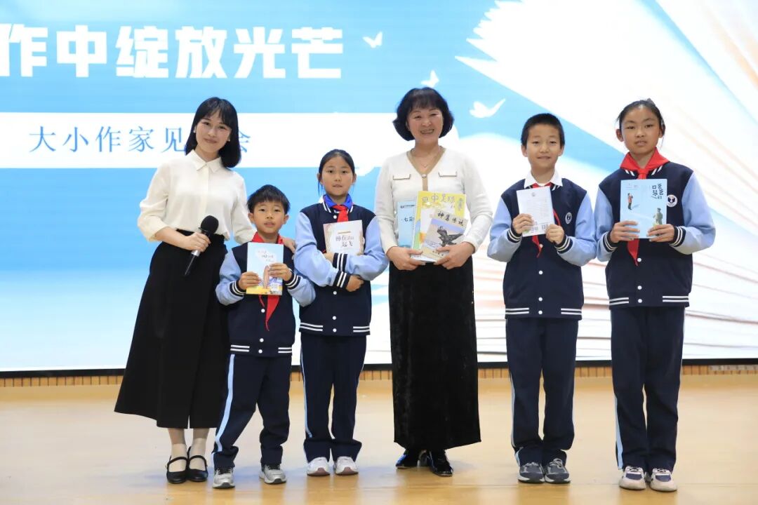 活动现场,四位小作家展示了石油附小学生绘本创作、成长式文集、主题式文集和长篇小说创作等丰硕成果,并与中国作家协会会员、中国寓言学会副秘书长张菱儿互动,互赠书籍,现场气氛热烈而温馨。